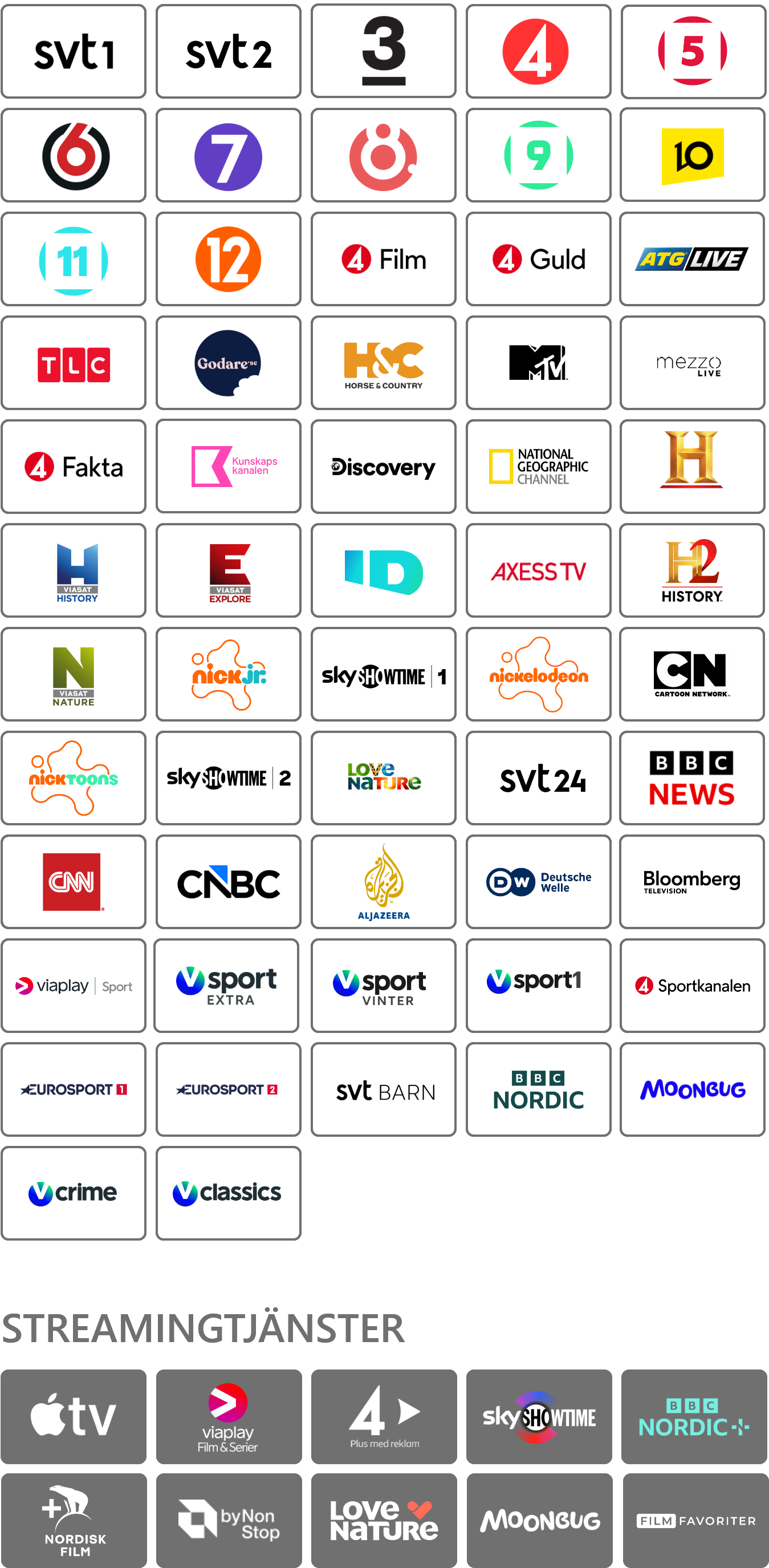 Dessutom ingår ett antal populära streamingtjänster med ännu mer underhållning i ditt tv-paket.
